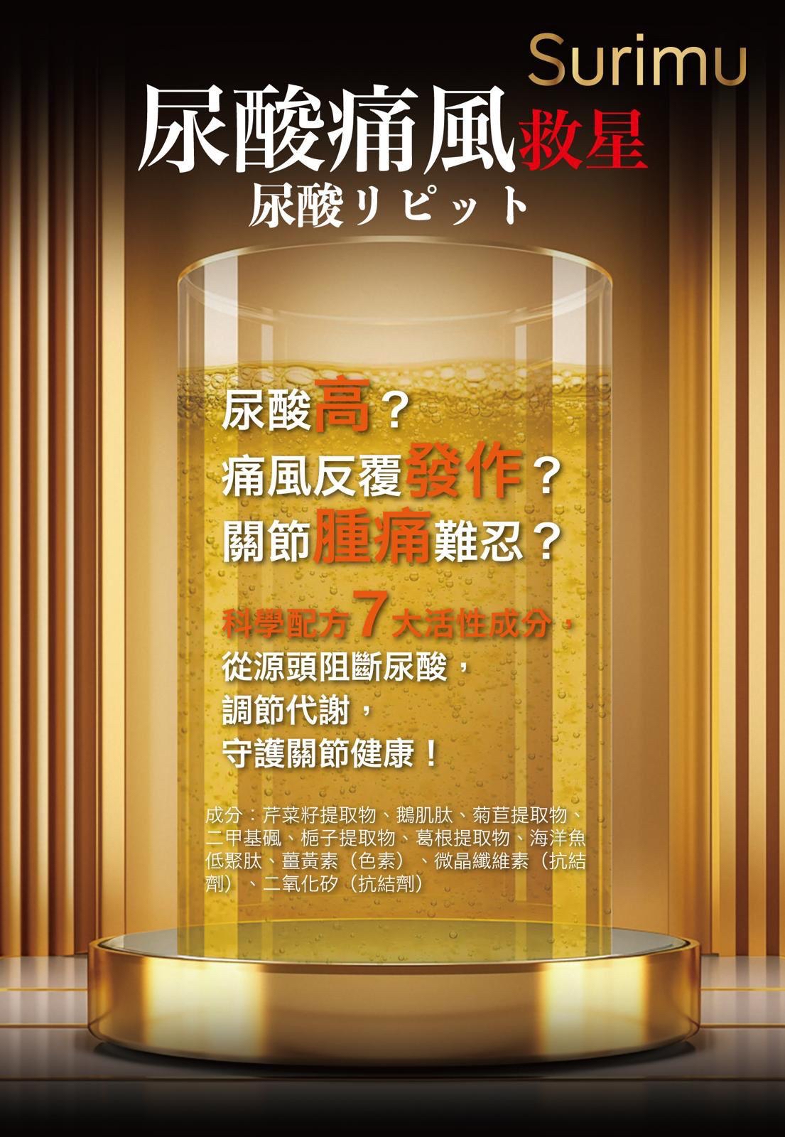 小分子胜肽活化腎臟URAT1 轉運蛋白,增加尿酸排泄效率,降低血清尿酸濃度。